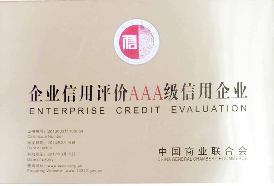 20140316 企业信用评价AAA级信用企业