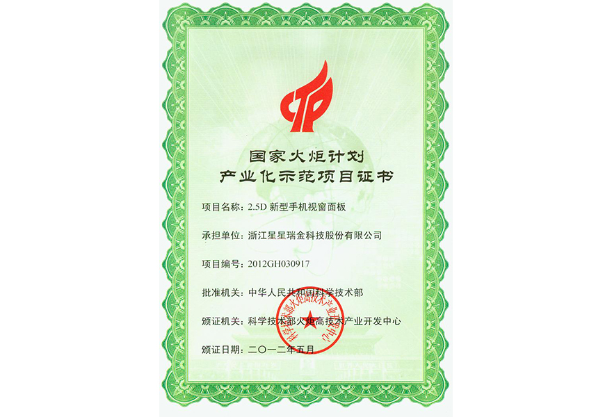 11.2.1-21国家火炬计划产业化示范项目证书201205