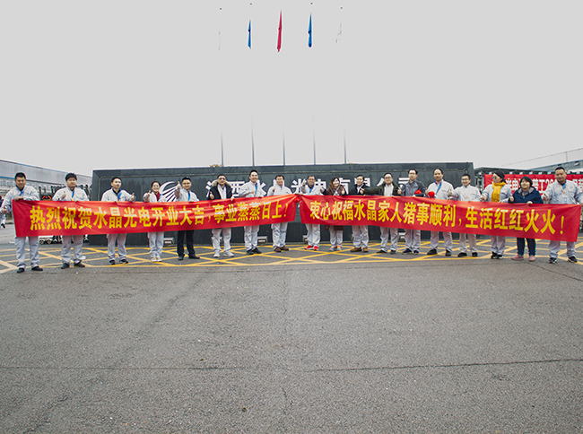2月12日,春节后上班第一天,水晶光电总经理王震宇携领导班子一行先后来到滨海厂区和洪家厂区,亲切走访慰问了广大员工,送上了真切的关心和祝福,为新一年的工作擂响战鼓。