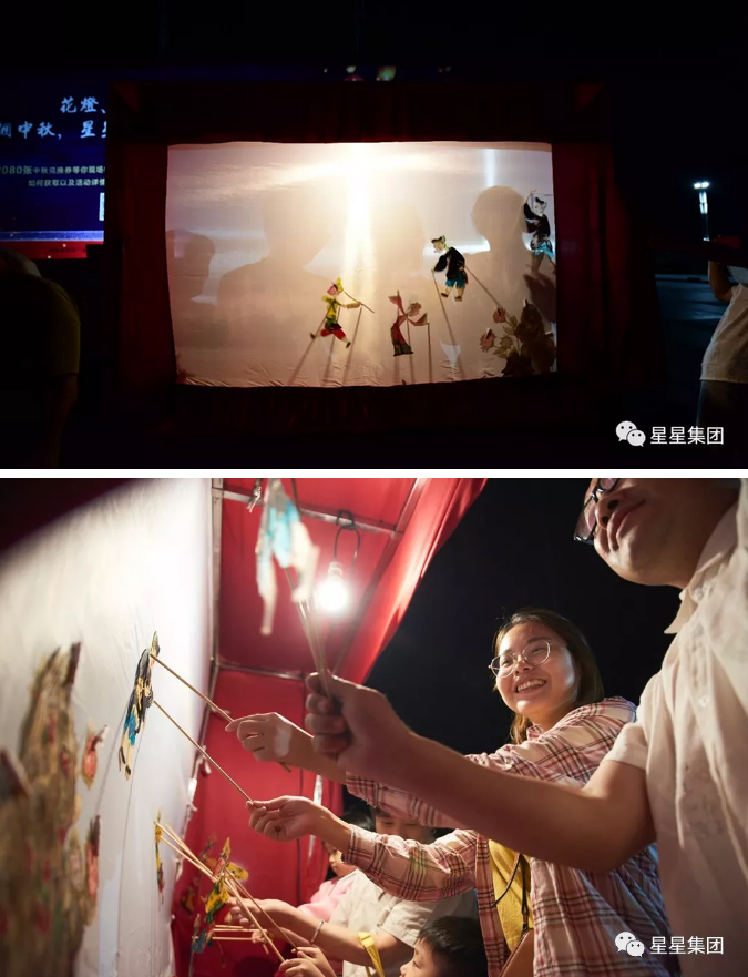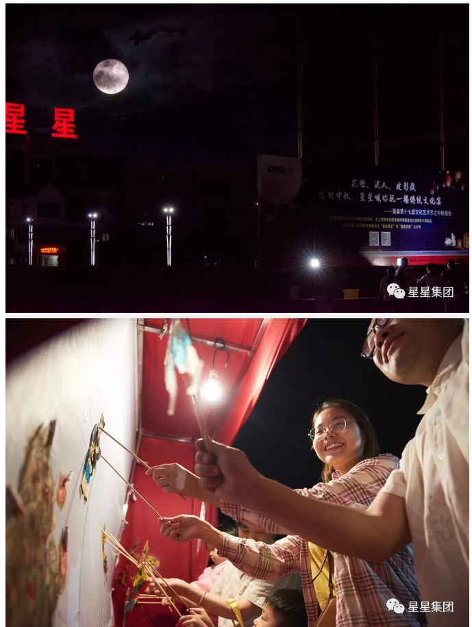 为了积极落实前阶段省委宣传部王四清部长调研星星时提出的关于文化分众供给的指示精神,星星第十七届文化艺术节结合公司当前实际,借中秋这一中国人珍视的传统节日,在园区广场为广大员工送上了一场关乎花灯、泥人、脸谱、皮影戏的传统文化盛宴。来自集团各单位不同层面的员工月下花灯、济济一堂。集团常务副总裁蒋亦标,党委书记、副总裁陈华明、副总裁林海平、总裁助理王绍卓等几位领导也都来到了活动现场,与广大员工共话中秋。