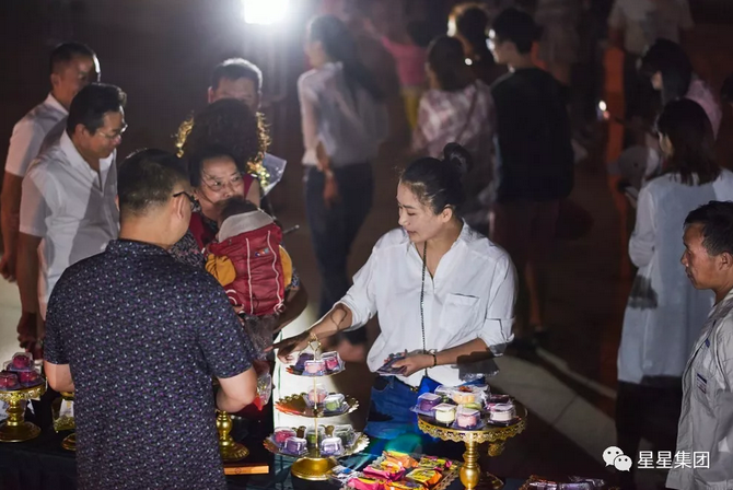当然,更多的是集团活动的老粉丝们,像星星冷链的张春旺、水晶光电的郝和钱、集团总部的包彦成、林利、戴广龙等人,五点刚下班,大家就匆匆吃了晚饭,早于活动开始前半个多小时就来到了活动现场,帮着组织者一起挂灯笼,摆月饼。