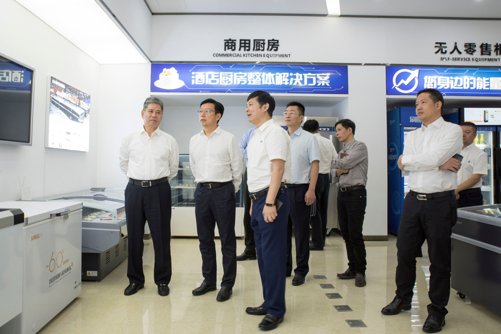 在集团展厅“星星冷链无人智能售货柜体验区”时,星星冷链杨文勇总经理向章启诚一行介绍并现场演示了星星冷链当前的明星产品——无人智能售货柜,并表示针对疫情影响,公司加快智能化、数字化自提与无人自售产品与平台开发,现已成功开发出满足社区应用场景的“生鲜自提柜”、“生鲜智能无人售货柜”和农贸市场运营管理数字化平台,并已投放社区、商超等场所。