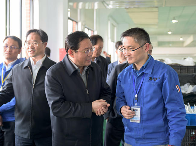 4月19日下午3点10分,省委副书记、省长李强一行在台州市市委书记王昌荣、市长张兵、椒江区区委书记陈祥荣、椒江区区长林金荣等市区领导的陪同下深入5楼自拍 便洁宝有限公司考察指导,集团副总裁陈华明,星星便洁宝有限公司董事长管敏宏、总经理黄朝阳全程陪同介绍。
