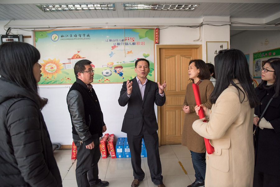 在听完校长的介绍后,陈华明书记还向校长详细询问了本校学生的学习生活及教学的状况,感谢他们为这特殊行业作出的贡献,因为他们的耐心指导才让这些孩子慢慢能够生活自理。在看完孩子之后,集团一行人又向在岗的女老师道一声节日的问候,感谢她们辛勤的付出和默默的陪伴。